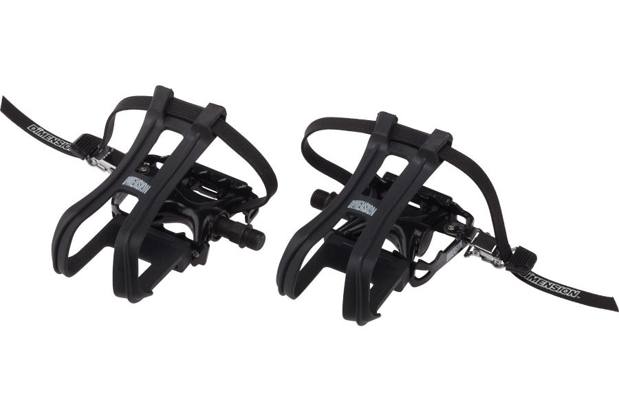 Dimension Combo Pedal Sets are assembled with size large toe clips, straps and reflectors.