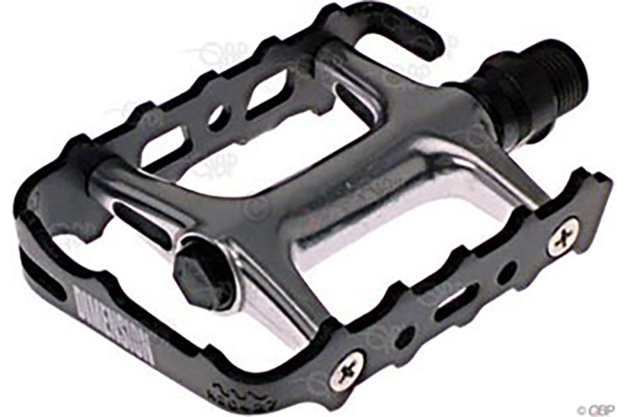Dimension Mountain Pro Pedals are lightweight and durable thanks to a forged aluminum pedal body and sealed bearings.